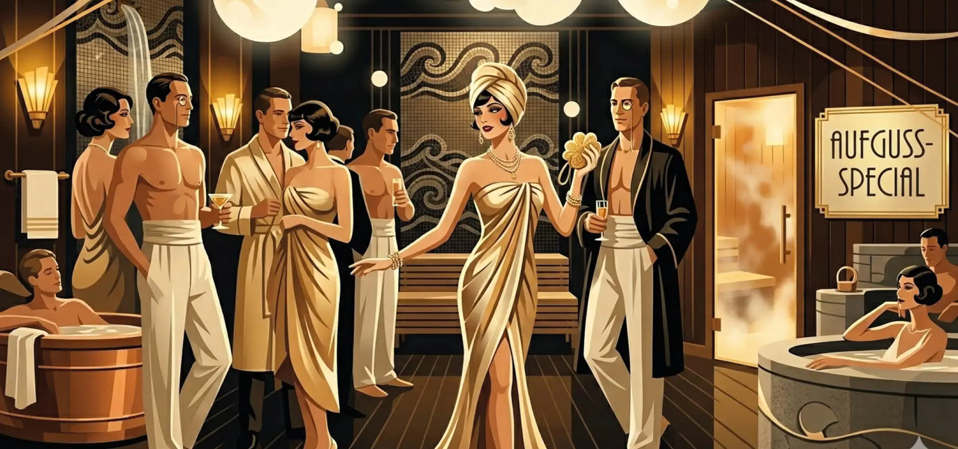 Saunieren im Glamour der Goldenen 20er: warme, elegante Duftnoten treffen auf nostalgische Musik. Bei regulärem Eintritt erwartet Sie ein besonderes Aufgussprogramm und leckere Spezialitäten in der Gastronomie und an der Saunafitbar.